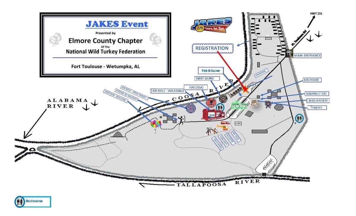 Elmore County National Wildlife Turkey Federation Chapter will host their FREE JAKE’s Take Aim Event on Saturday, June 10th at Fort Toulouse in Wetumpka, Alabama. This event is full of outdoor activities for youth 17 and younger that will include target shooting, clay target shooting, and shotgunning in a safe, fun environment. JAKES stands for Justice Acquiring Knowledge, Ethics and Sportsmanship. Their goal is to help pass on the tradition of responsible hunting, teach the principals of habitat management, hunting ethics, and safety. The Elmore County NWTF has been putting on this yearly tradition since 2009.