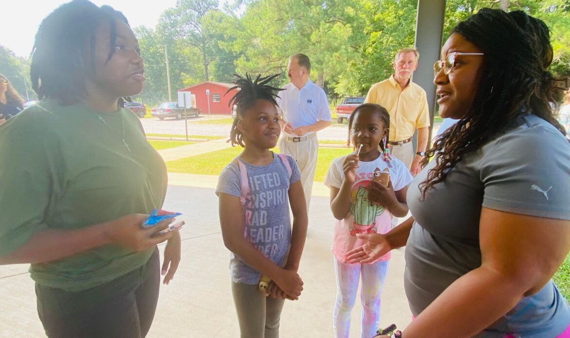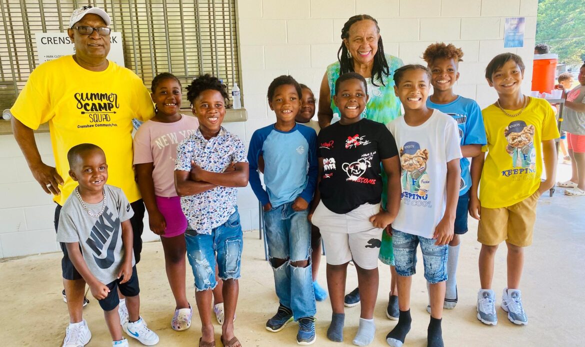Crenshaw Park Board Members Hertisene Crenshaw, El Wanda Penn, and Keith Means were in attendance as well for all to celebrate the purchase of new playground equipment for the park. About 30 children from the Crenshaw Summer Youth program took part in the celebration as well.