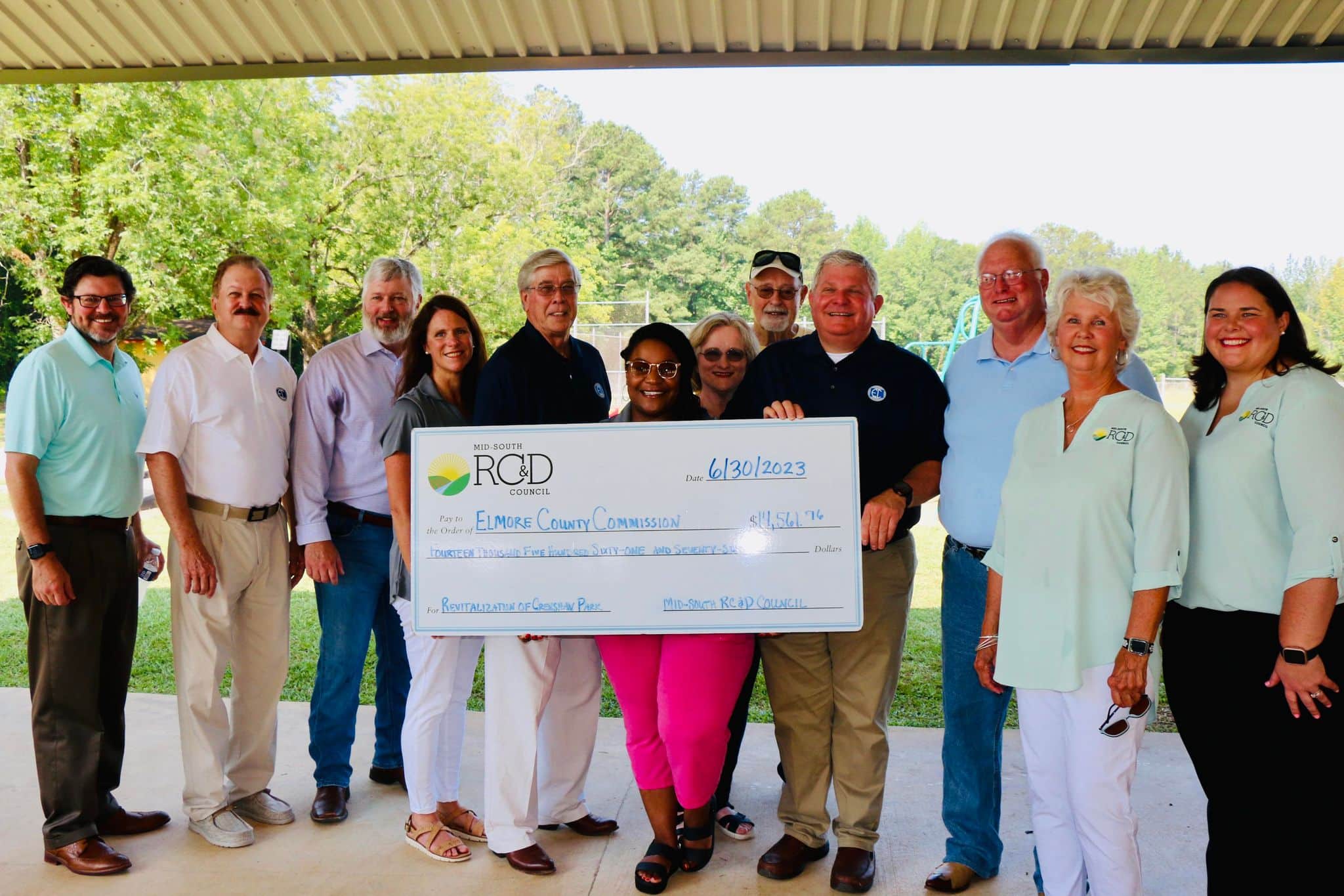 On Friday the non-profit organization Mid-South RC&D Council presented a grant check in the amount of $14,561.76 to assist the Elmore County Commission for improvements at Crenshaw Park.