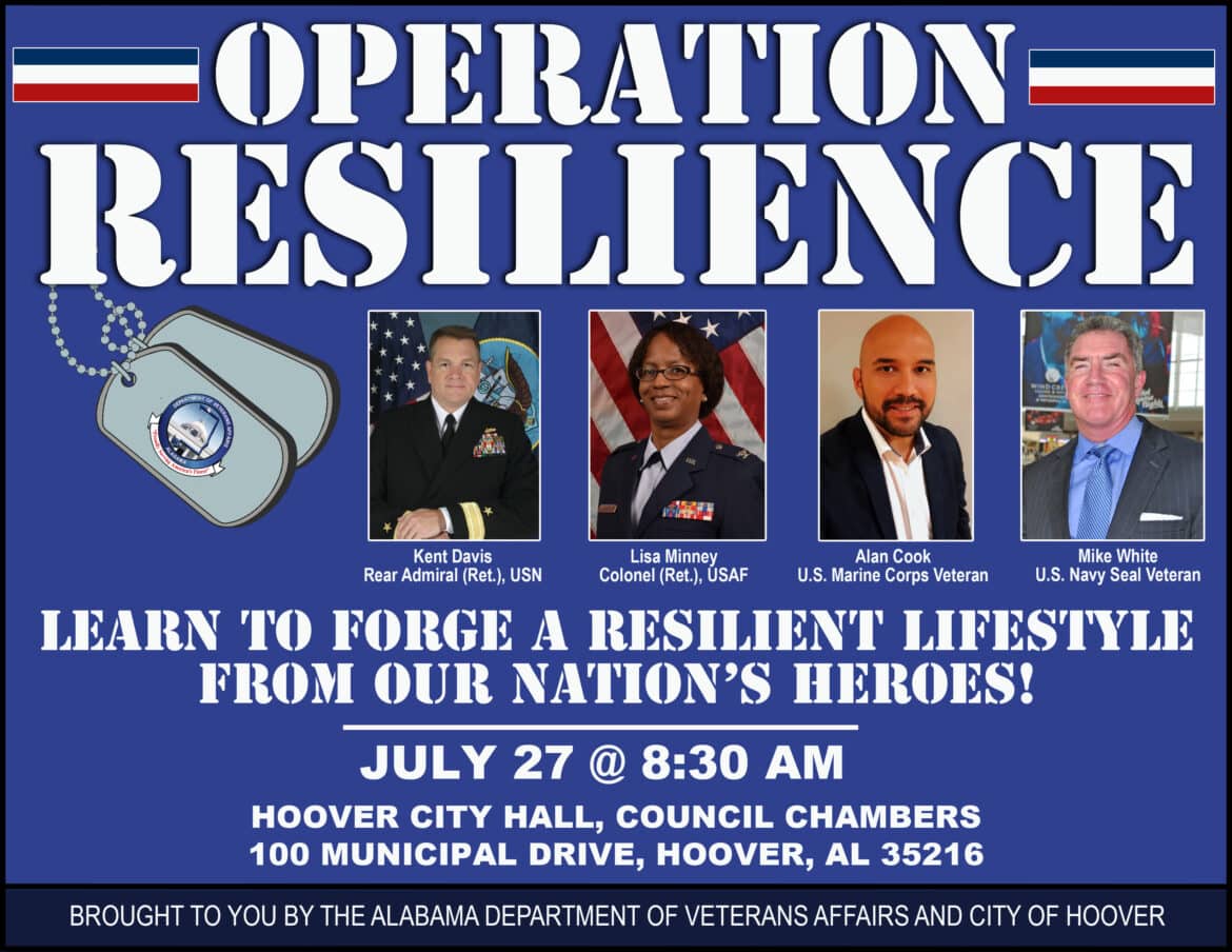 MONTGOMERY, Ala. – The Alabama Department of Veterans Affairs (ADVA) is holding a resilience panel discussion on July 27 at 8:30 a.m. at Hoover City Hall in the William J. Billingsley Council Chambers to introduce the conversation of building and furthering a resilient lifestyle.