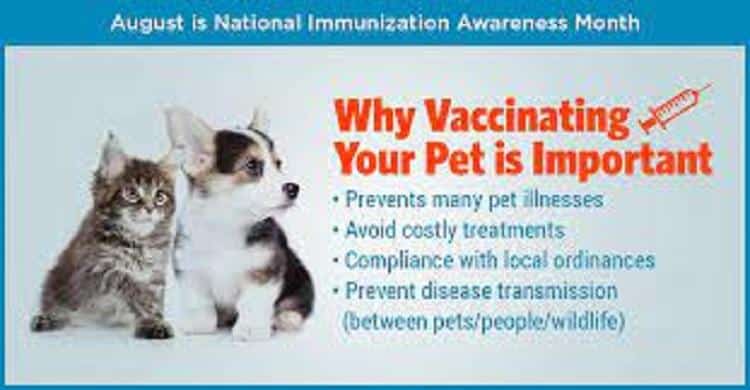 August is National Immunization Awareness Month and just like with us, it is very important to keep your pets up to date on their vaccinations. The greatest form of protection against the many illnesses your pet can get is by vaccinating them. We strongly recommend taking your pet to your veterinarian annually and having all necessary vaccinations done based on their advice to keep them protected.