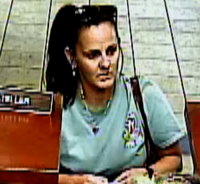 The female was seen on video surveillance wearing a green shirt, dark hair, and sunglasses.