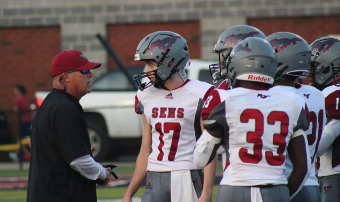 Leading 14-6 with less than three minutes remaining in the 3rd quarter of the season opening road contest at Shades Valley in Irondale, the Mustangs used two defensive touchdowns to pull ahead comfortably, and two impressive 4th quarter touchdown rushes by Freshman Damarrian Barnes to complete the blowout win, 42-13. It was the first game as Head Coach for Hunter Adams, who had served as the Stanhope Elmore Defensive Coordinator for the previous six seasons.