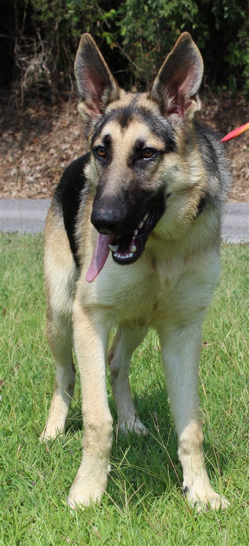 Roscoe is an 1-year-old male German Shepherd who must be neutered before adoption.  He is an owner turn in because they could no longer take care of him.  Roscoe has the classic black and tan coat of a pure-bred German Shepherd.  He weighs 70 pounds so he is a big fellow.  Handsome Roscoe is very active and playful.  He is friendly and would be okay in a home with older children–no younger children due to his activity level.  Roscoe is very smart but he would need an experienced owner to teach him to curb his energy and teach him proper canine behavior.  Roscoe is strong, powerful, and loves to jump.  This is a majestic and grand dog who needs an owner who is willing to take up a lot of time with him.