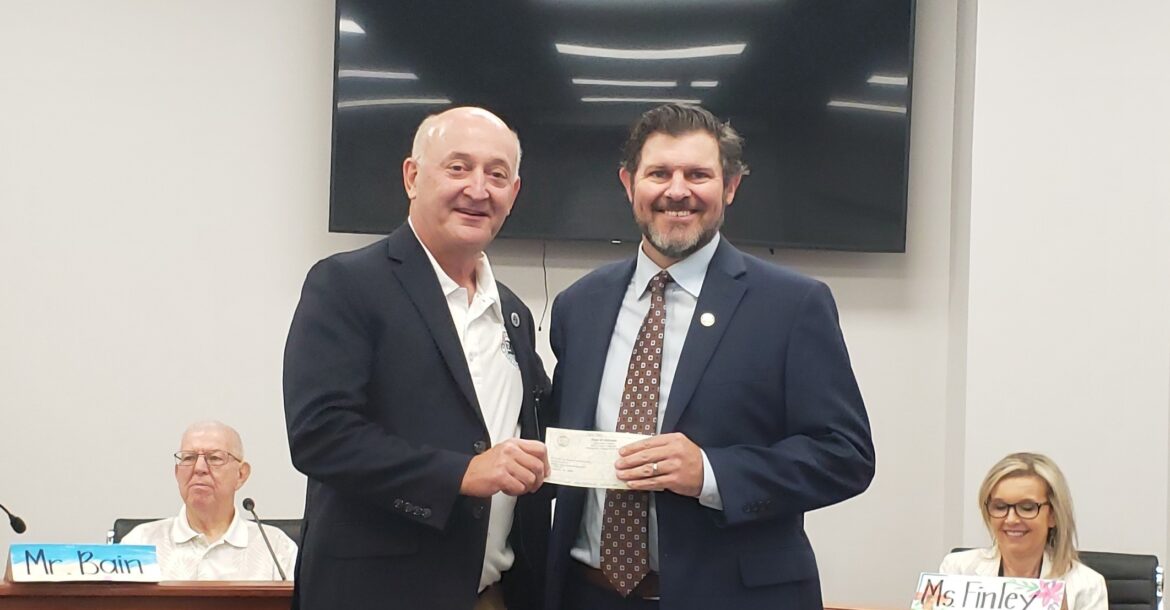 Alabama State Representative Troy Stubbs was a special guest this morning at a special Elmore County Board of Education meeting, and he brought a $140,000 check with him as a community service grant for the school district.