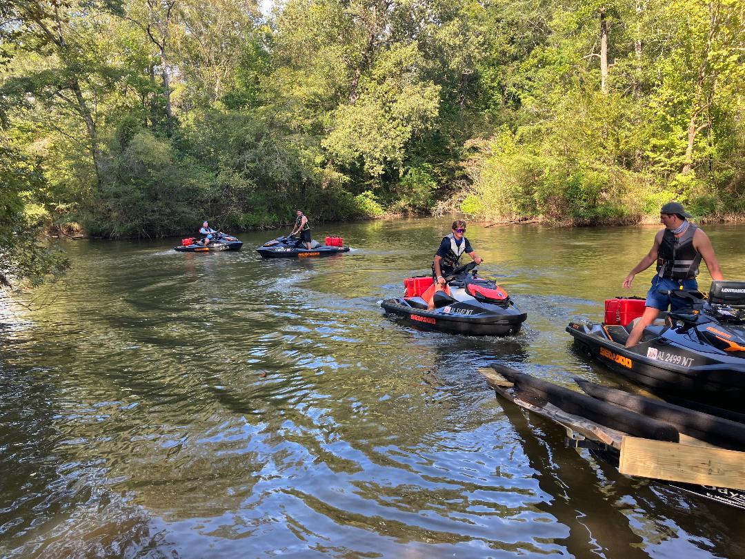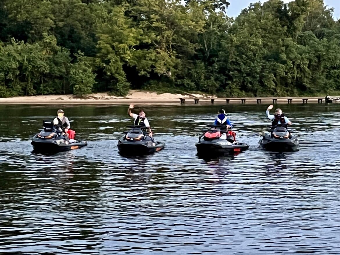 Joined by numerous friends and family, three generations of the Mercer family including David, Cameron, Chad, and Owen Mercer, launched four Sea-Doos in the Coosa River at Gold Star Park in Wetumpka at daybreak on Friday September 22, 2023. This started a 410-mile journey down the Coosa River that collectively took 17 hours and ended in Gulf Shores the next day around noon.