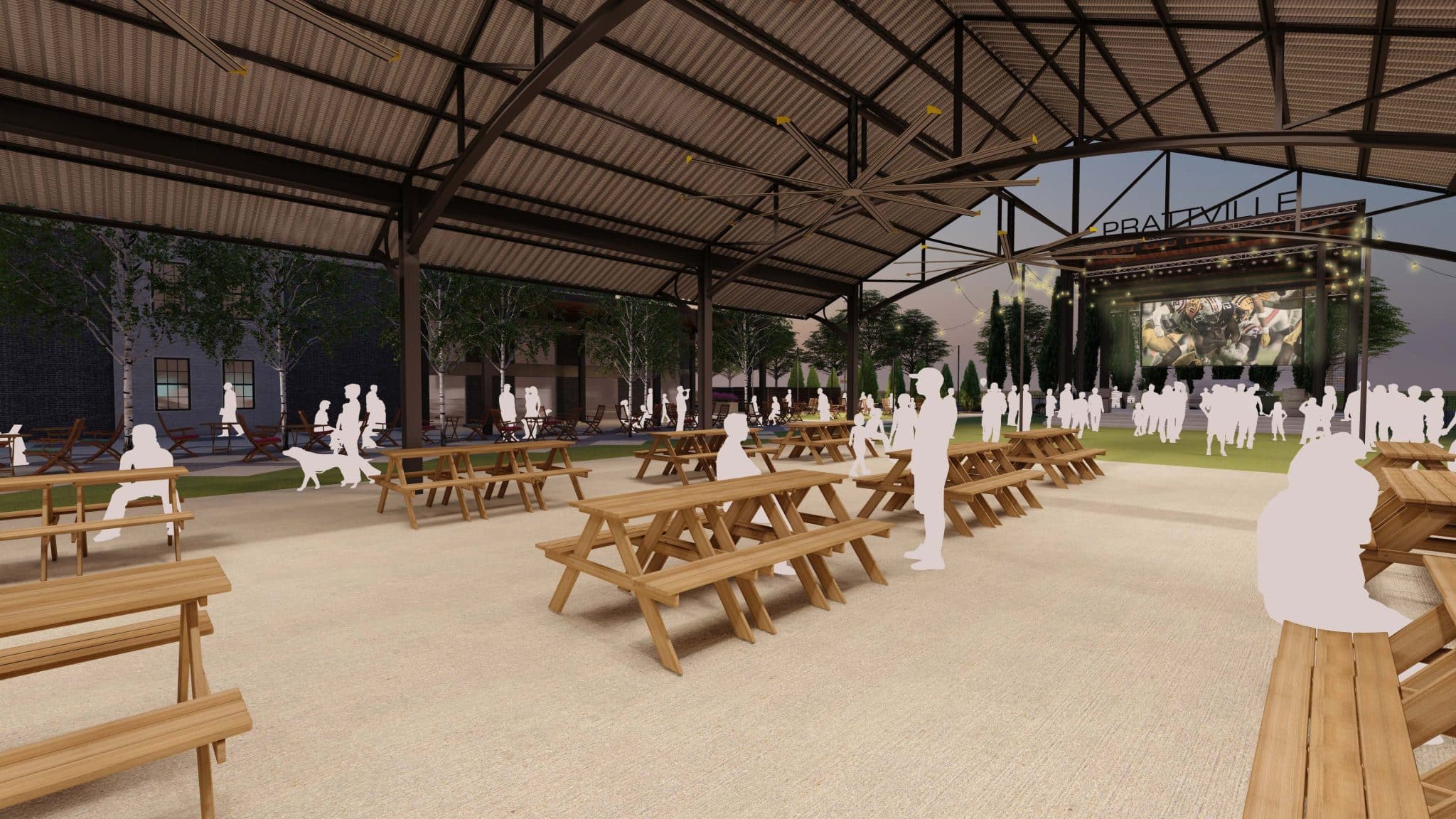 As part of continuing efforts to revitalize downtown Prattville, the venue will contain a large multiuse pavilion, a covered stage for live performances, a canopy-covered seating area, a movie screen for shows and sporting events, multiuse space for recreational games, lighting, and a sound system.”