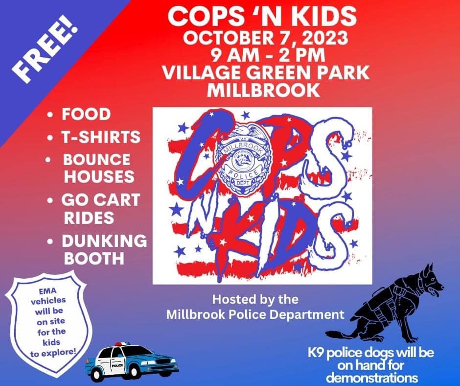 Also this Saturday, 7 Oct, 9 am – 2 pm we will be participating with the Millbrook Police Department 13th annual Cops and Kids Day at the Village Green Park. They will have plenty of fun, food, games, displays and K-9 demonstrations at no cost. Our staff will have a few pups there to meet all the children and potentially find new and loving homes!