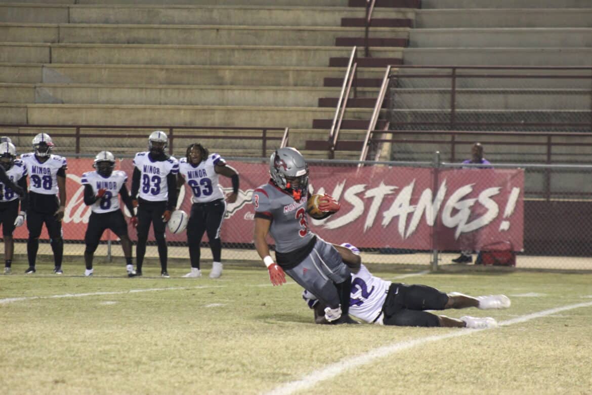 The Mustangs’ defense came up with a fumble recovery at the SEHS 45-yard line with 1:20 remaining, giving the offense an opportunity to tie the game, but before running a play, the Mustangs had a delay of game penalty. The Mustangs were able to move the ball into Minor territory and faced a 4th down with 20 seconds left in the game, but Bryant was sacked on his drop back and unable to get a pass attempt off.