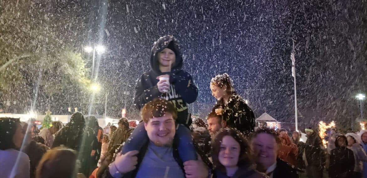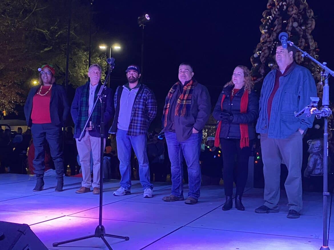 Just prior to the tree lighting, Mayor Al Kelley welcomed everyone to the event, saying it is a perfect representation of the community. He thanked everyone who played a part in bringing the event together beautifully. He also introduced the city council members, and then began the countdown to the Lighting and Snow Fall to wild cheers.