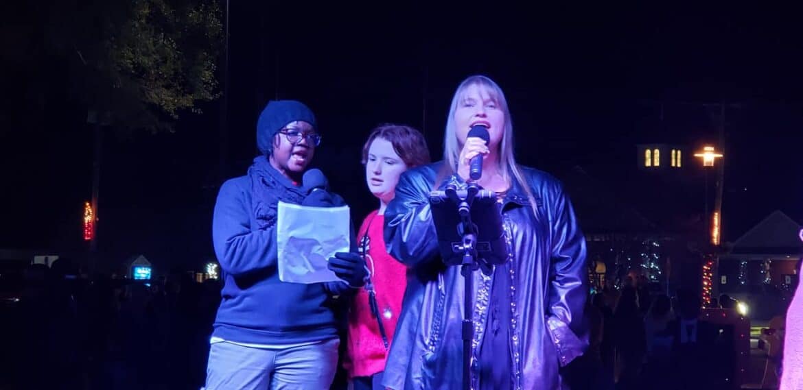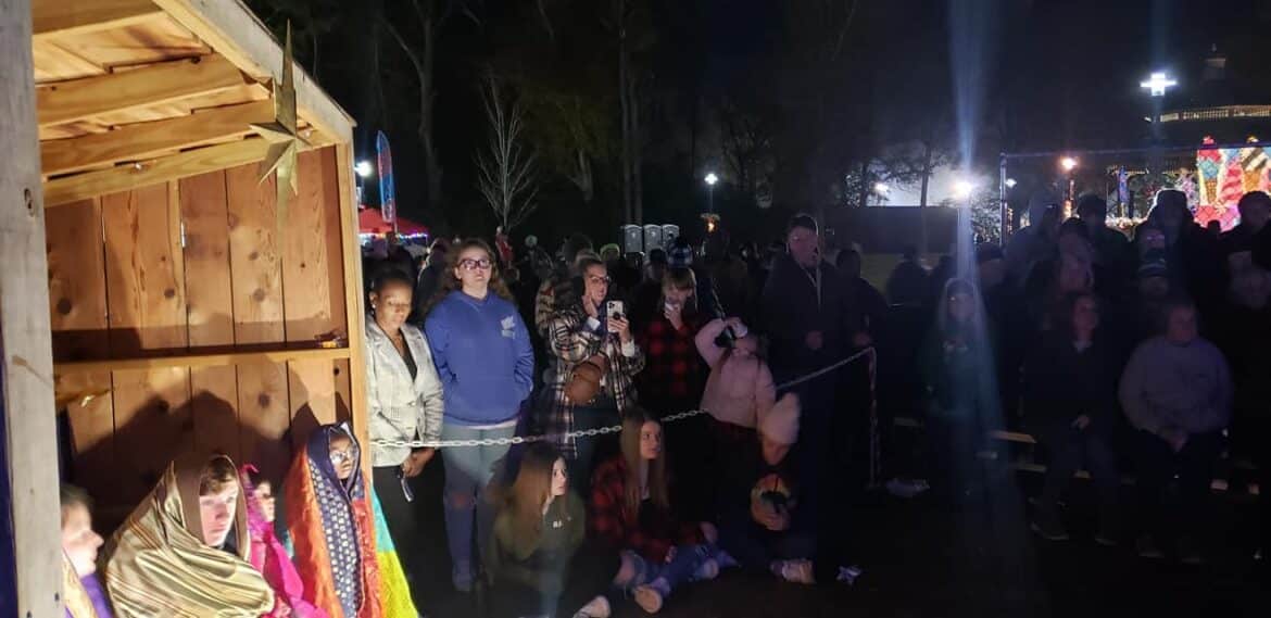 Pastor DJ Stinnard with The Gathering Place told the story of the birth of Jesus, followed by beautiful carols sung by a praise band. The church also provided the Live Nativity.