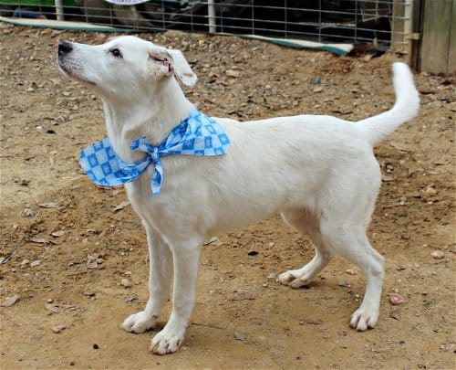 Dream is seven-months old as of early January, 45-50 lbs. She is an extremely loving girl, is active so not a couch potato, house, leash and crate trained. Great with children, dogs and cats. Knows sit, shake, stand and lay. Stayed in a fence. Not a huge fan of car rides.