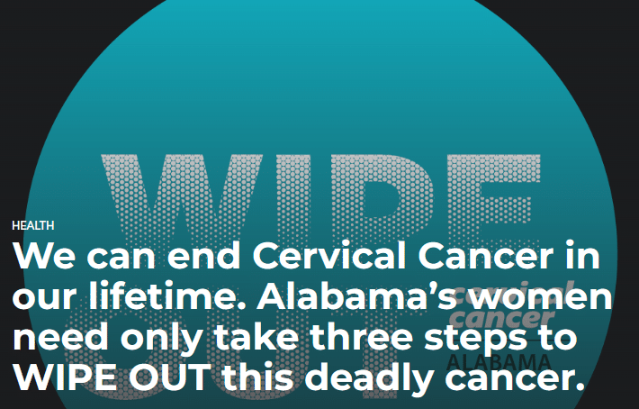 The Operation WIPE OUT founding partners include ADPH, TogetHER for Health, University of Alabama at Birmingham Department of Obstetrics and Gynecology, O’Neal Comprehensive Cancer Center, Rotary Club of Birmingham, Rotary Club of LaFayette, American Cancer Society, and Quality of Life Health Care Services. Since its launch, many other partners have joined, and all Alabamians are invited to join the collaboration and support the elimination of cervical cancer through HPV vaccination, screening, and follow-up/treatment. To find out more, visit our website.