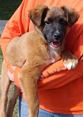 Rosey is a 3-month-old female Shepherd mix who has already been spayed. She came to PAHS as a stray who was found on the side of the road out in the county. Rosey has a medium length coat that is brown; and she has a black muzzle. She also has some white markings. Look up ‘beautiful canine’ in the dictionary and Rosie’s picture will be there. She will be a large adult dog who will weigh 50-60 pounds. Rosey is as sweet as she can be–very loving and cuddly! She would make a great family dog who would get along great with children and other dogs. Do NOT miss out on your chance to adopt this gorgeous puppy with such a loving personality.