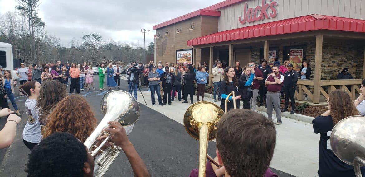 ECLECTIC, AL – This morning residents of the Town of Eclectic, officials from throughout Elmore County and the Pep Band of Elmore County High School helped celebrate a big day in town with the opening of Jack’s Restaurant.