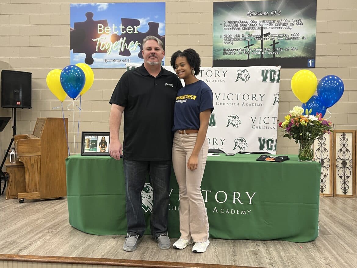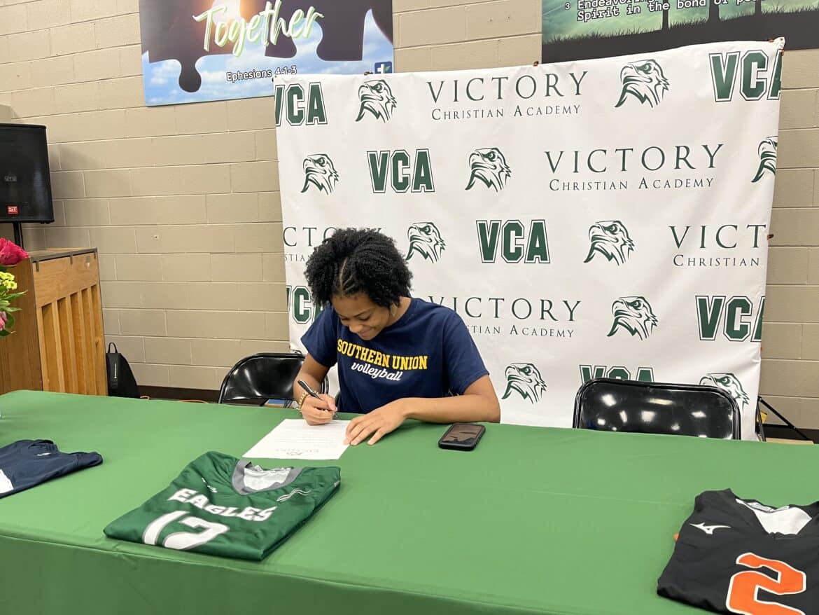 “This is a big deal, signing a letter of intent. Volleyball is not her only sport, she played basketball and is playing softball right now, and overall, she’s a great athlete and even better person. The leadership that she brings and her Christian testimony, Southern Union, you’re gaining a great player,” Victory Christian Athletic Director Adam Childers said.