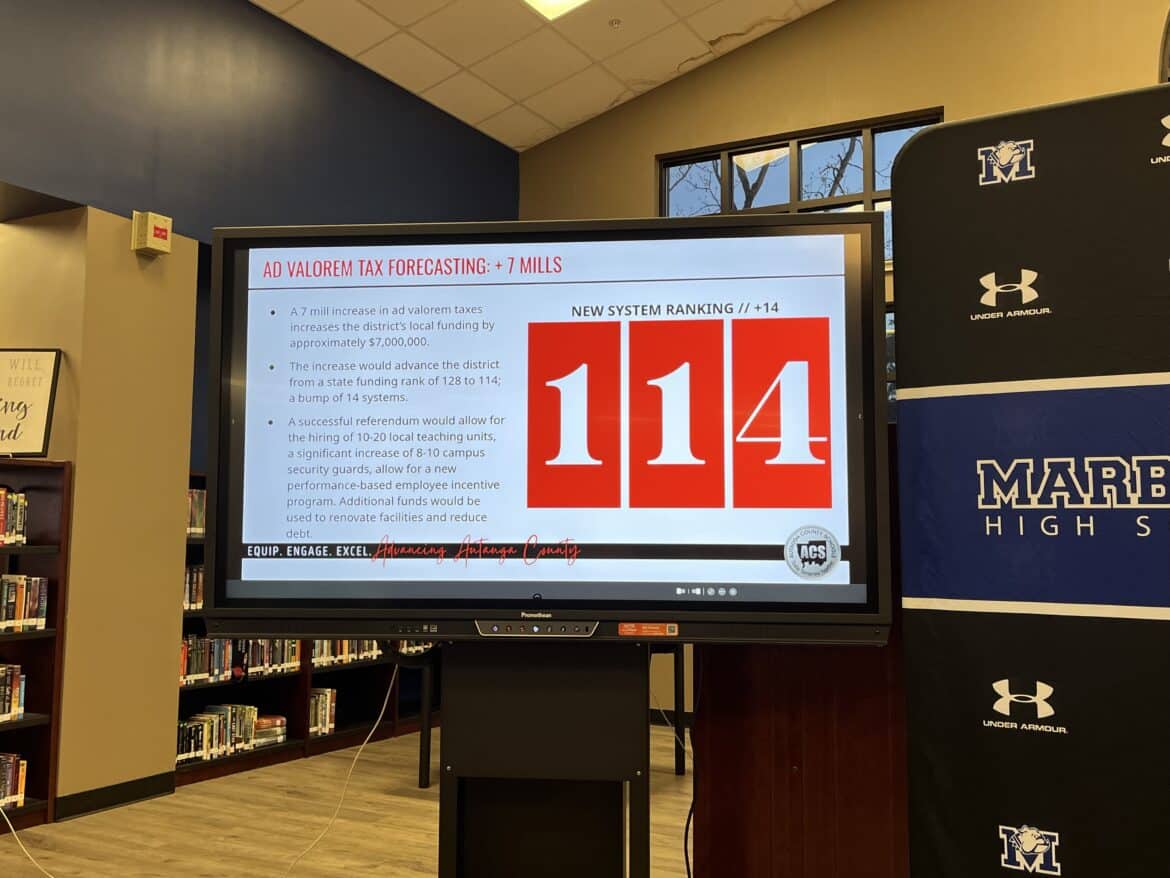 Currently, Autauga County is ranked 128th out of 138 school systems in the state, this ranking system is determined by totaling all funding in federal, state and local entities. Woodfin’s goal, if the tax increase is approved, is to jump to 114th ranked in the state.