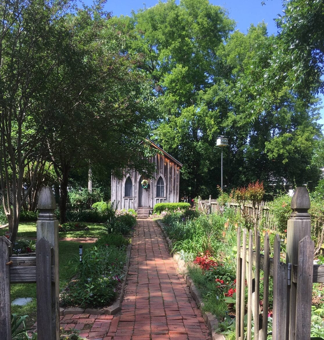 The Gardeners keep the garden period appropriate by enhancing the gothic-style chapel and keeping the garden true to design containing herbs for medicinal use and cooking. Other plants include hardy perennials, native plants, nectar sources and host plants for pollinators as well as trees that flourish in the River Region.