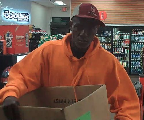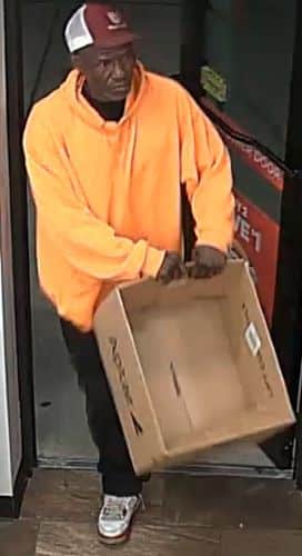 Investigators say the pictured suspect, identified as a black male, walked into the business and used the pictured cardboard box to steal $1,575.00 of cigarettes, the suspect left the business without paying. The suspect left the scene in an unknown direction of travel in the pictured Dodge Dakota, blue in color. There are no other details available for release at this time.