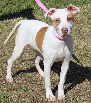 Billy, formerly known as Tiny, is a 6-month-old male American Bulldog mix who has already been neutered. He is white with gorgeous brown markings; and he is a handsome fellow. Billy currently weighs 42 pounds, and we believe he will be a large adult dog. He is active and has some ‘puppy energy’ that will keep you busy and entertained! Billy knows the commands ‘sit, stay’; is leash trained but not house trained. Billy would be just fine with children and other dogs. Since he is playful, he would need a securely fenced yard where he can safely play. Billy would love life best with an active family who includes him in all their outdoor adventures. This is such a great dog who is going to make some lucky adopter so happy with their new family member!