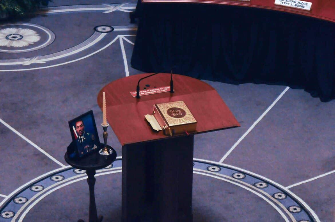 Judge Lewis stated he was humbled, and thanked everybody for their time for coming and was overwhelmed by the turnout. He also went on to thank his family for their unwavering support and love in all that he does, stating when they hurt, he also hurts with them.