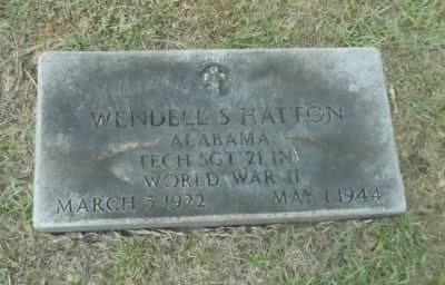 Technical Sergeant Wendell S. Hatton was killed in action on May 1, 1944 in Dutch New Guinea. His remains were returned home in 1948, and graveside services were held at Memorial Cemetery in Montgomery, Alabama. Military rites were performed by the local American Legion Post. Sergeant Hatton was awarded a Purple Heart for the sacrifice of his life in the service of his country. He was survived by his parents and his brother.