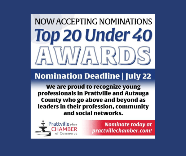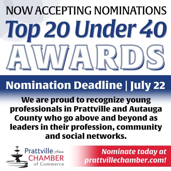 The Prattville Area Chamber of Commerce is excited to announce that the Top 20 Under 40 nominations are now open!