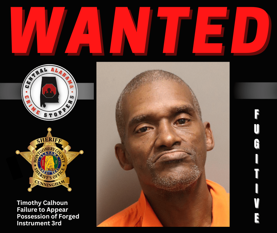 Central Alabama CrimeStoppers is offering a cash reward for information that leads to the location and arrest of Calhoun.
