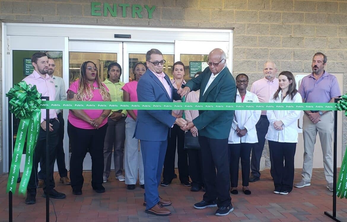The new store celebrated a ribbon cutting with Manager Daniel Sims, Millbrook Mayor Al Kelley and Publix associates before a full parking lot of vehicles and people. Soon after the crowd swarmed through the doors to check out the newest Publix in our area and take advantage of some store specials.