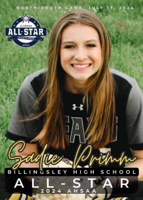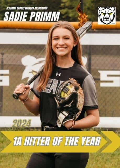 In her junior season, Billingsley Softball’s Sadie Primm established herself as one of the best hitters in the state of Alabama after a monster season at the plate. Primm was named Class 1A First Team All-State by the Alabama Sports Writers Association and selected to the AHSAA All-Star game. She was also named as the Class 1A Hitter of the Year after posting impressive statistics. She had a .518 batting average, .566 on base percentage, and 1.090 slugging percentage.