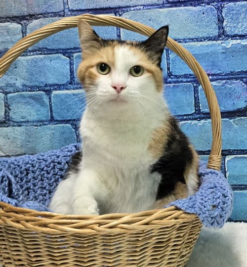 Princess is a lovely calico lady, doing well at twelve-years old with many years of love yet to give. She is an INDOOR kitty. She was surrendered by her owner who could no longer keep her. Princess is a very sweet lady, had lived with another cat and a small dog, but has not been around younger children.
