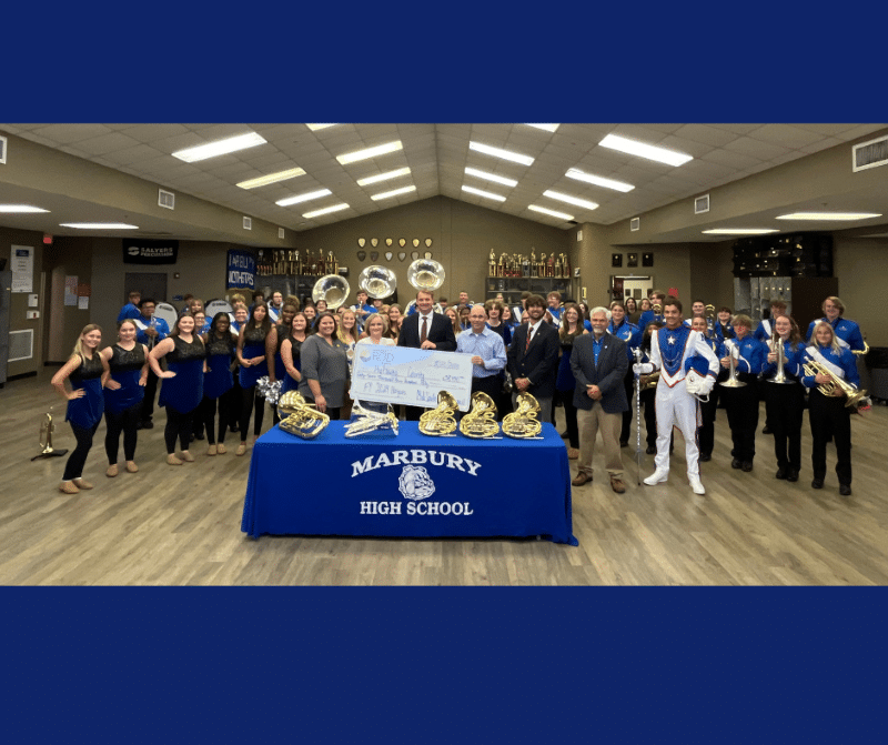 The last stop on the tour was at Marbury High School, where the Marbury High School NorthStar Band received a $22,250 grant for new instruments and uniforms.