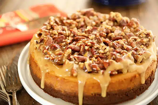 Easy Pumpkin Cheesecake with Pecan Pie Topping