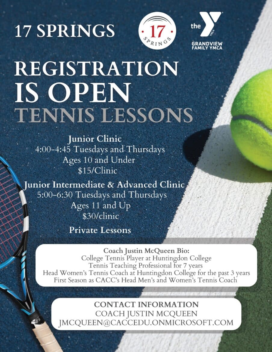 Exciting news! 17 Springs will be offering tennis lessons for youth! Whether your child is a beginner or looking to improve their game, our expert coach is here to help them serve up some fun. Get them ready to ace their tennis skills and make new friends on the court!