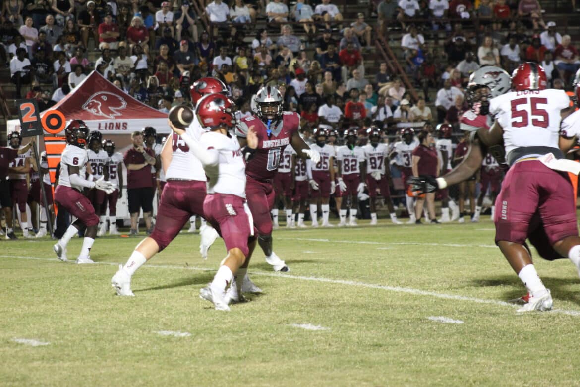 A week after an impressive performance in the season opening win over Pike Road, the Prattville Lions’ offense again impressed with a strong performance on the road against the Stanhope Elmore Mustangs. Running back Tristen Blackmon rushed for 3 touchdowns, and quarterback Gavin Rigdon passed for 262 yards and 1 touchdown to lead the Lions to a 34-13 win.