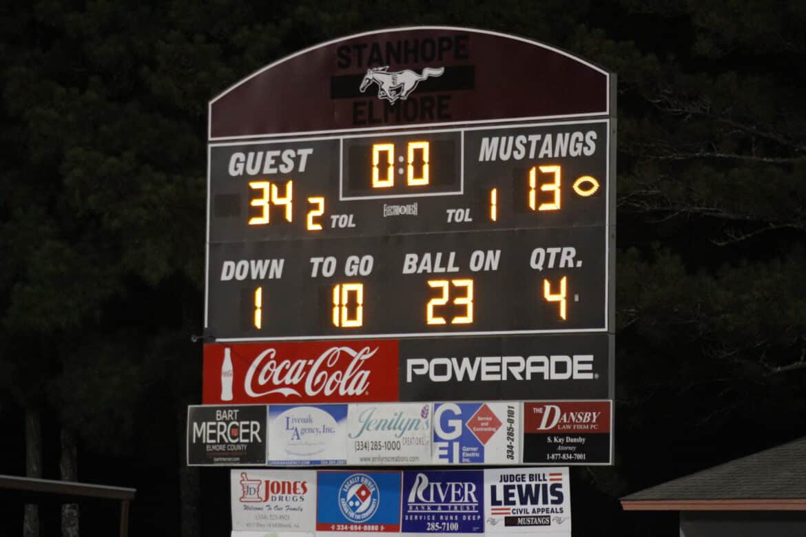 The Mustangs moved the ball late in the 3rd quarter, and on the first play of the 4th quarter, Stanhope Elmore quarterback Zack Holcomb threw a touchdown pass from 6-yards out. It was the first touchdown pass of Holcomb’s career. The Lions blocked the extra point, so the lead was 27-13.