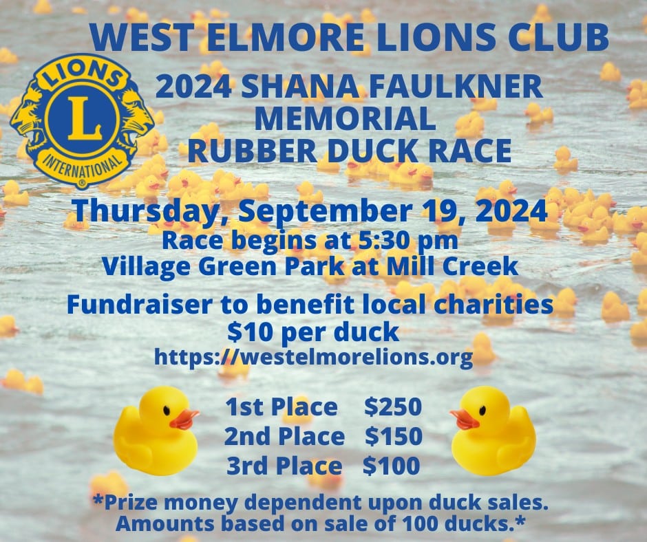 The West Elmore County Lions Club is hosting their annual Duck Race September 19. Purchase your duck(s) from any Lion’s Club member, Kelley’s Accounting or visit www.westelmorelions.org