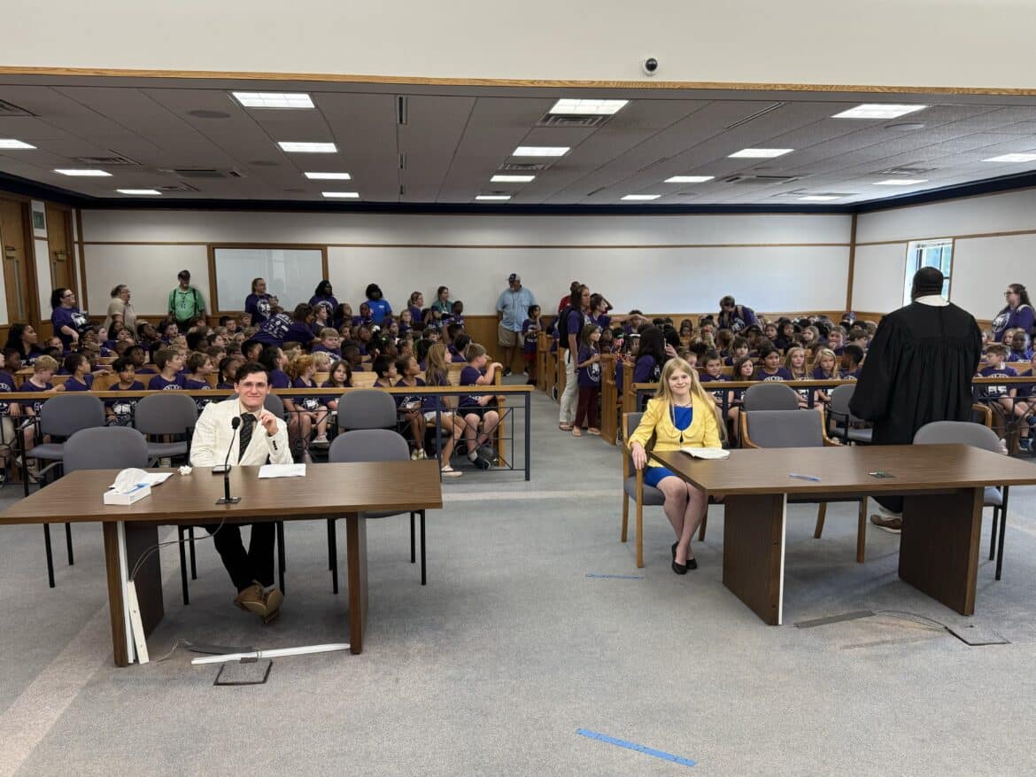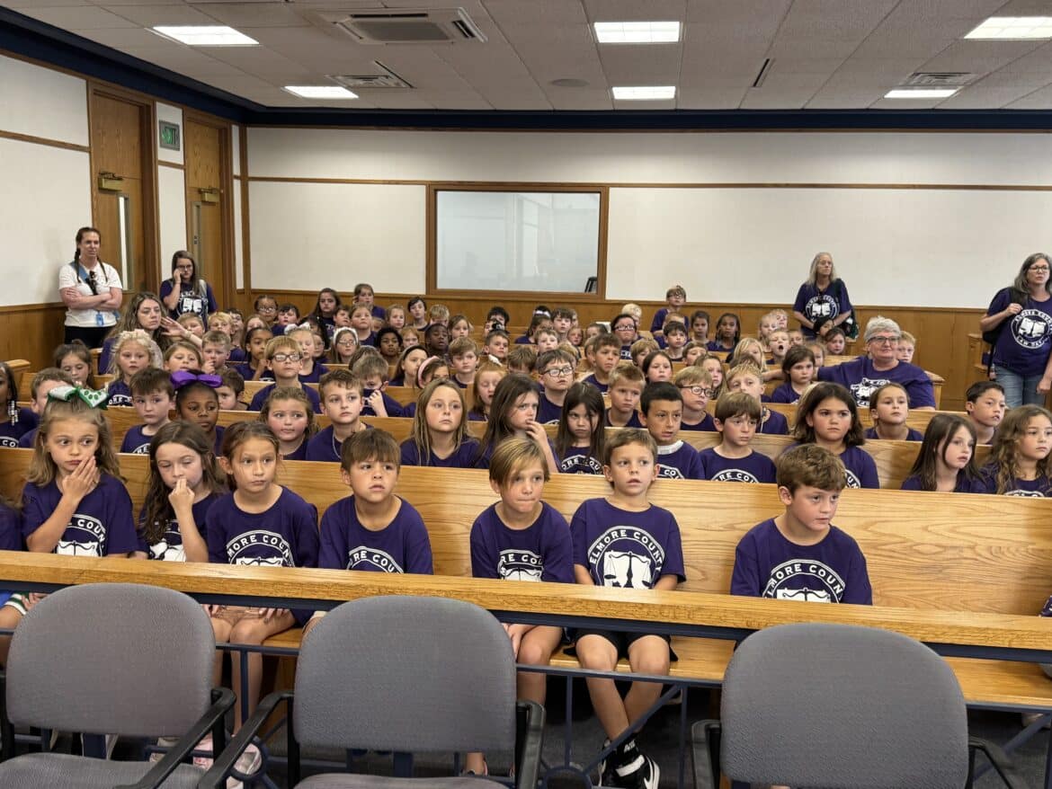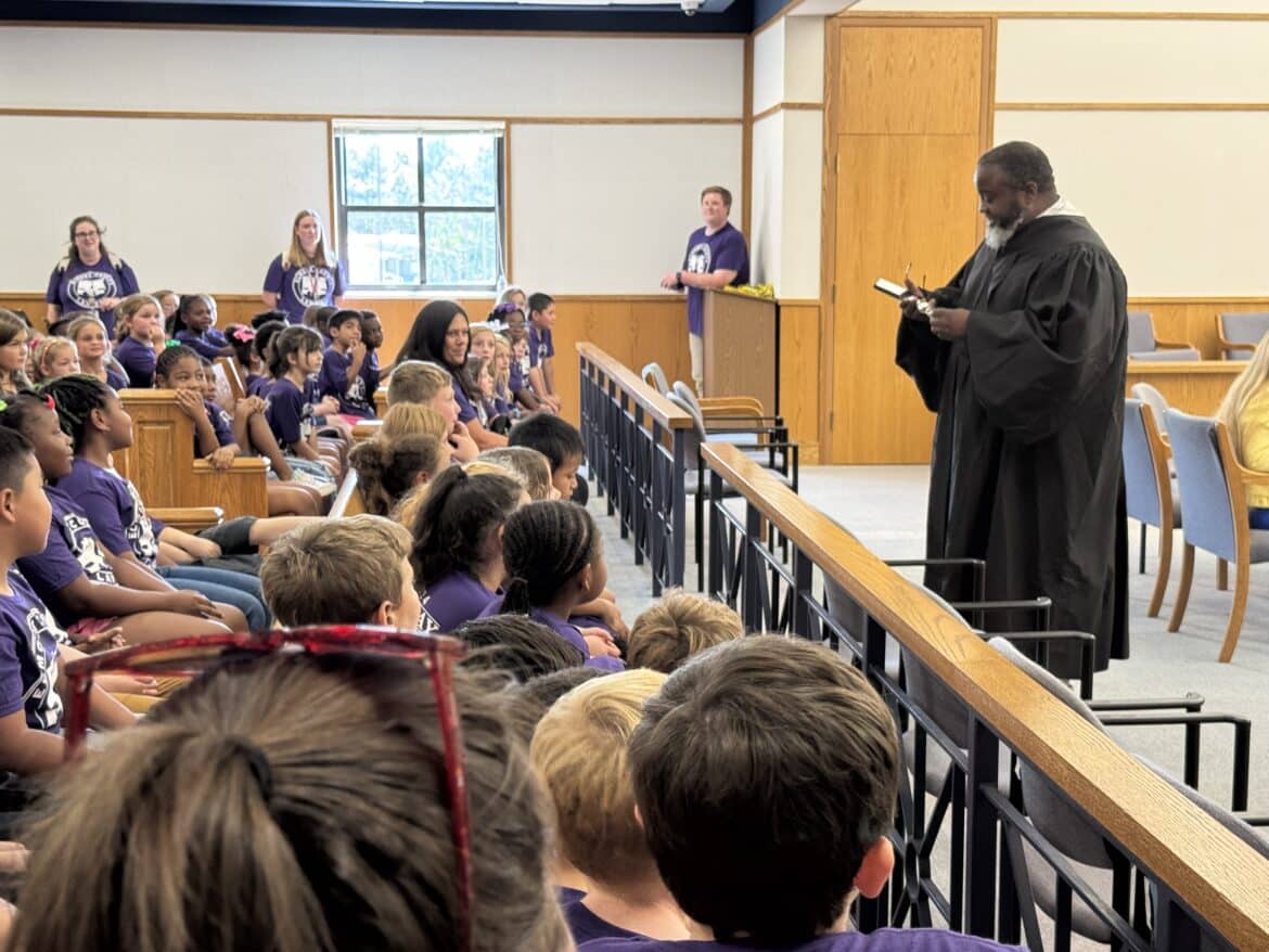 Recently, Elmore County Law Day was held for all second grade children at the Elmore County Judicial Complex in Wetumpka. This yearly tradition is held on the third Friday in September. This makes the seventh year for this program which has grown each and every year. Every school in Elmore County is invited to come and get to watch a mock trial of Goldilocks and the Three Bears and then visit with first responders. Students created posters at their schools in honor of Law Day which were displayed in the halls of the judicial complex.