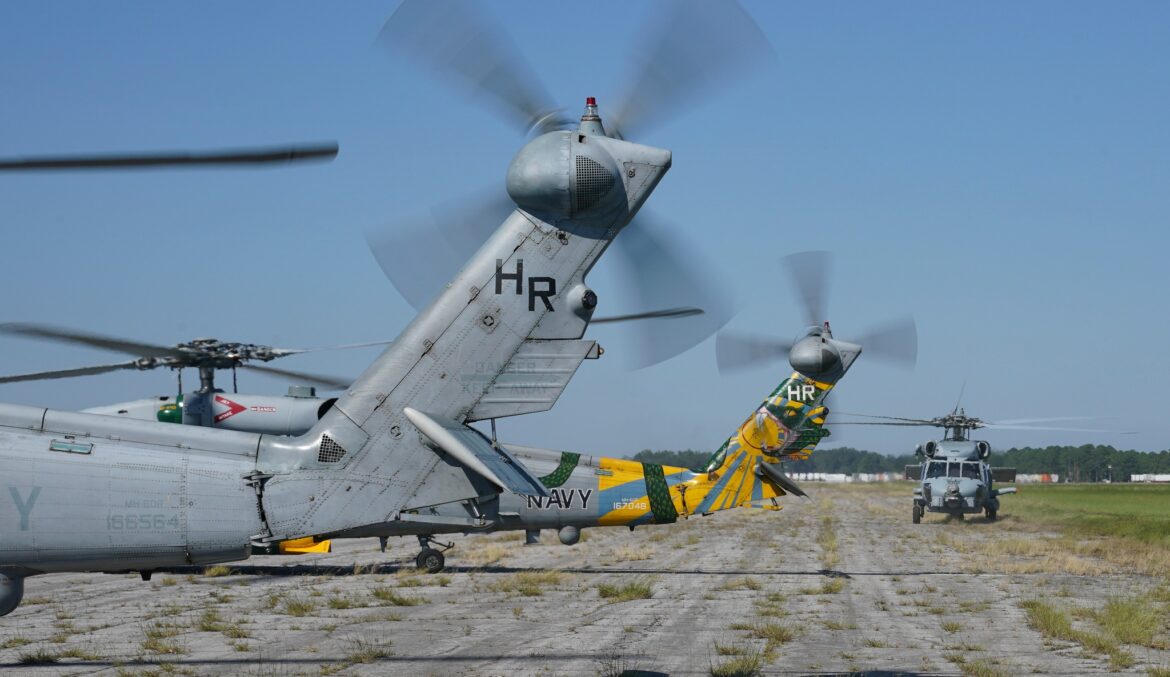Senior Airman Elizabeth Figueroa)U.S. Navy MH-60R Seahawks and support personnel assigned to the Helicopter Maritime Strike Wing at Naval Air Station Jacksonville, Florida arrive at Maxwell Air Force Base, Alabama, Oct. 8, 2024. The aircraft and personnel have relocated to Alabama in preparation for Hurricane Milton that is expected to impact Florida later this week. (U.S. Air Force photo by Senior Master Sgt. Richard P. Ebensberger)U.S. Navy MH-60R Seahawks and support personnel assigned to the Helicopter Maritime Strike Wing at Naval Air Station Jacksonville, Florida arrive at Maxwell Air Force Base, Alabama, Oct. 8, 2024. The aircraft and personnel have relocated to Alabama in preparation for Hurricane Milton that is expected to impact Florida later this week. (U.S. Air Force photo by Senior Master Sgt. Richard P. Ebensberger)U.S. Navy MH-60R Seahawks and support personnel assigned to the Helicopter Maritime Strike Wing at Naval Air Station Jacksonville, Florida arrive at Maxwell Air Force Base, Alabama, Oct. 8, 2024. The aircraft and personnel have relocated to Alabama in preparation for Hurricane Milton that is expected to impact Florida later this week. (U.S. Air Force photo by Senior Master Sgt. Richard P. Ebensberger)U.S. Navy MH-60R Seahawks and support personnel assigned to the Helicopter Maritime Strike Wing at Naval Air Station Jacksonville, Florida arrive at Maxwell Air Force Base, Alabama, Oct. 8, 2024. The aircraft and personnel have relocated to Alabama in preparation for Hurricane Milton that is expected to impact Florida later this week. (U.S. Air Force photo by Senior Master Sgt. Richard P. Ebensberger)U.S. Navy MH-60R Seahawks and support personnel assigned to the Helicopter Maritime Strike Wing at Naval Air Station Jacksonville, Florida arrive at Maxwell Air Force Base, Alabama, Oct. 8, 2024. The aircraft and personnel have relocated to Alabama in preparation for Hurricane Milton that is expected to impact Florida later this week. (U.S. Air Force photo by Senior Master Sgt. Richard P. Ebensberger)U.S. Navy MH-60R Seahawks and support personnel assigned to the Helicopter Maritime Strike Wing at Naval Air Station Jacksonville, Florida arrive at Maxwell Air Force Base, Alabama, Oct. 8, 2024. The aircraft and personnel have relocated to Alabama in preparation for Hurricane Milton that is expected to impact Florida later this week. (U.S. Air Force photo by Senior Master Sgt. Richard P. Ebensberger)