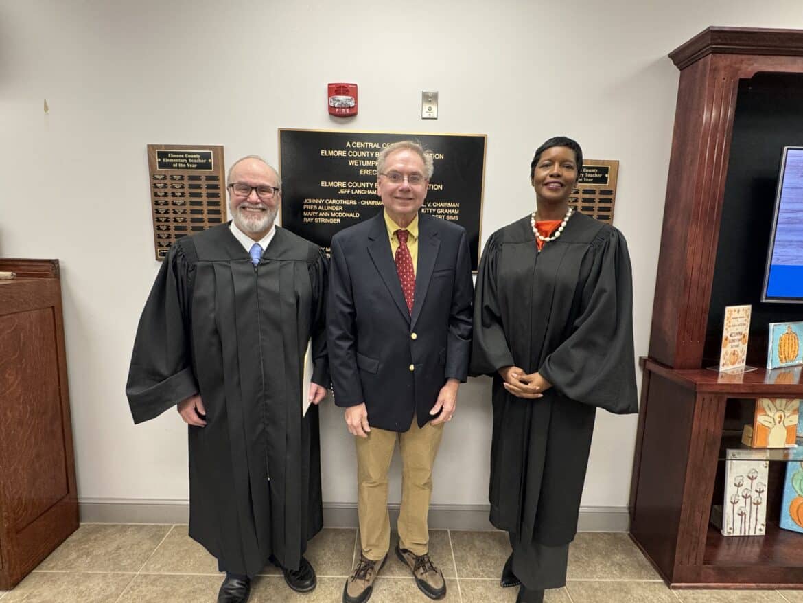 Before the regular meeting, a swearing-in ceremony was held for newly elected and re-elected board members Wendell Saxon, Josh Lett, and David Jones. The ceremonies were presided over by District Judge Tiffany McCord of Montgomery, Elmore County District Judge Glenn Goggans, and Probate Judge John Thornton.