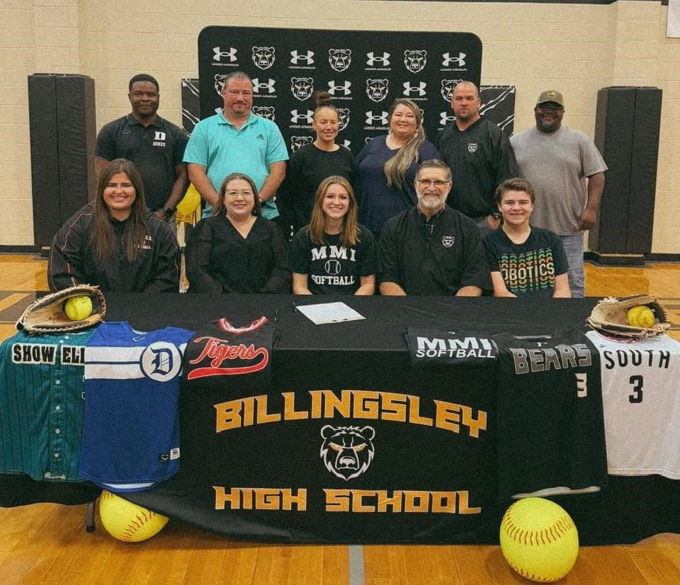 On Wednesday, November 13, Billingsley Senior Sadie Primm, the reigning Class 1A Hitter of the Year, signed a softball scholarship with Marion Military Institute. The junior college is based in Marion, Alabama, and located approximately 50 miles west of Billingsley. This past season, MMI placed 3rd at the NJCAA South District Tournament, and set a program record going 43-17 overall and 25-7 in ACCC play.