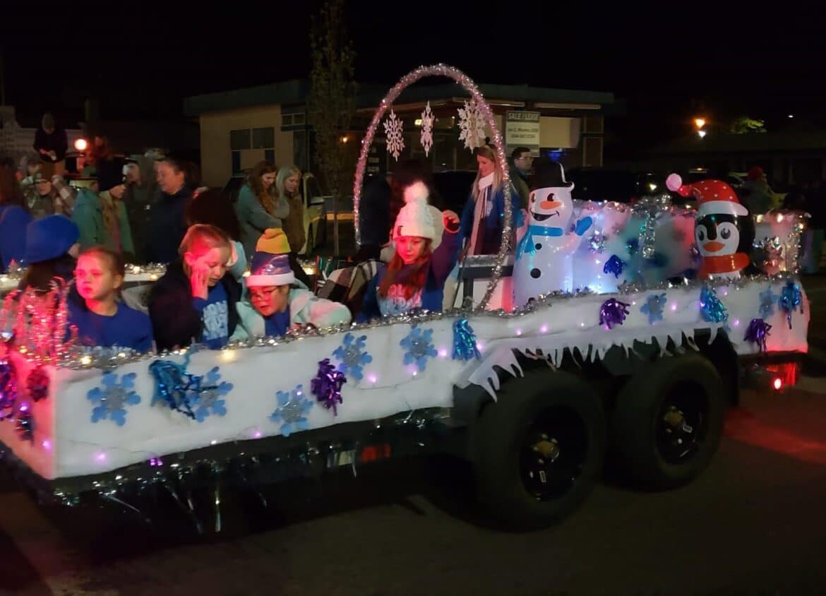 Traditionally, Santa and Mrs. Claus are at the end of the parade, but due to cold temperatures they made their appearance not far behind Grand Marshal Yee Yan Yankee” McKinnon. This was a way for families with small children to see the famous couple early, in case they needed to make an exit to warmer temperatures.