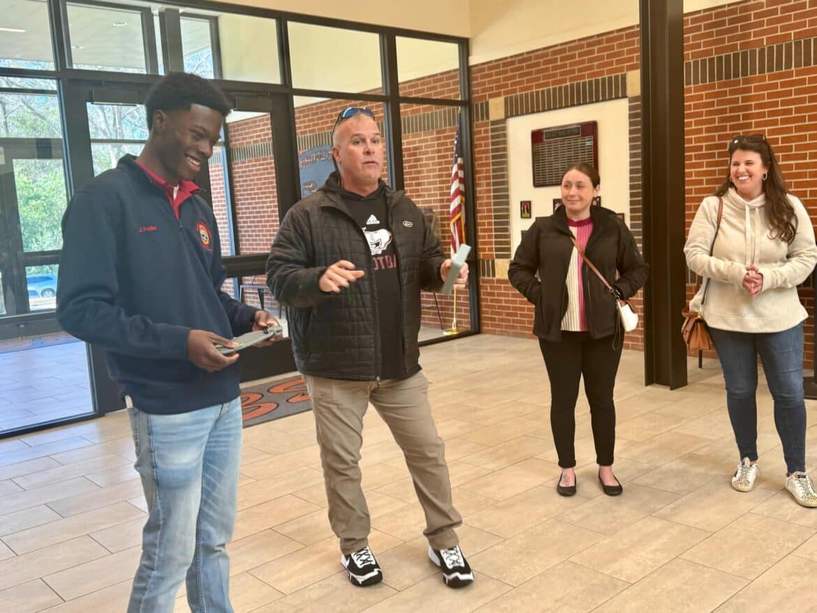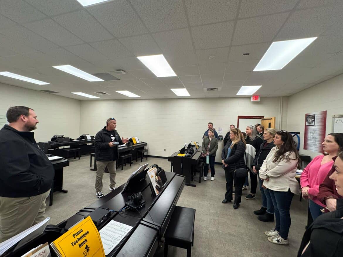 SEHS Principal Ewell Fuller spoke to the parents about the importance of cell phone safety and the positive effects of students keeping cell phones in their Yondr pouch unless there is an emergency. He also showed the parents newly renovated additions to the school. This included the Atrium, band room, theatre room, piano room and fine arts classroom.