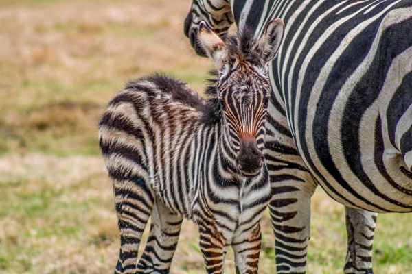 The gestation period for Grant’s zebras ranges from 360 to 395 days. A newborn zebra’s stripes will turn from brown to black sometime between the first 9-18 months of life. Silver will stick close to her mother as foals will nurse for up to a year before being weaned.