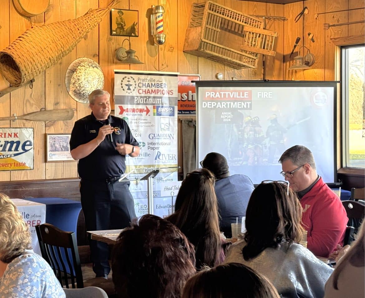 Cupps has been with the Prattville Fire Department for five years now in addition to several years with another station. He spoke about his team and how much he enjoys working with them. The fire department welcomed a new fire Chief, Josh Bingham, as well as a new fire Marshall, Craig Allen in 2024. In the same year the fire department gained thirteen new fire fighters. Cupps told the group that they were able to hold their recruit training class at their own training facility.