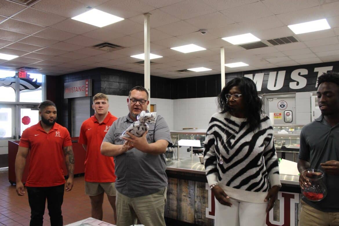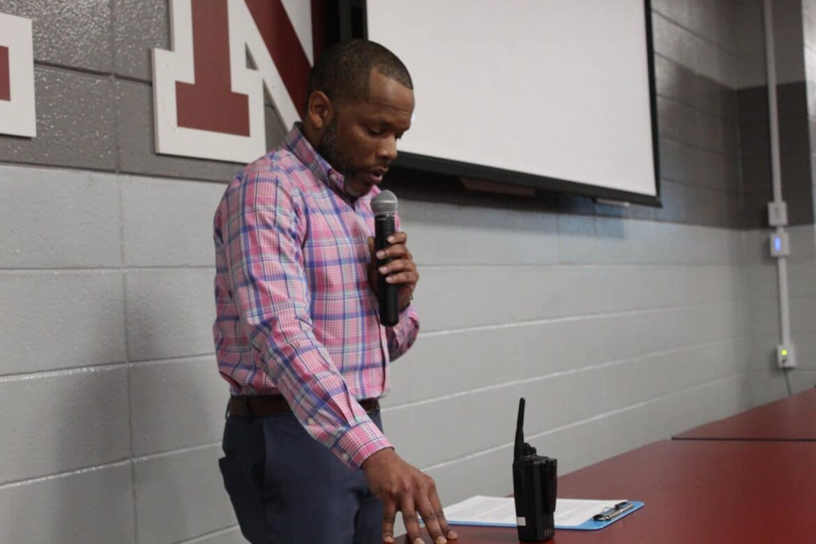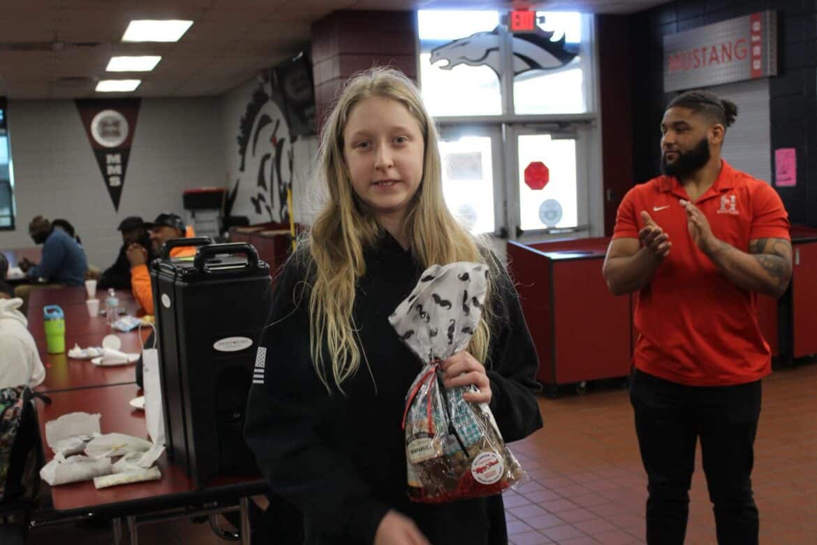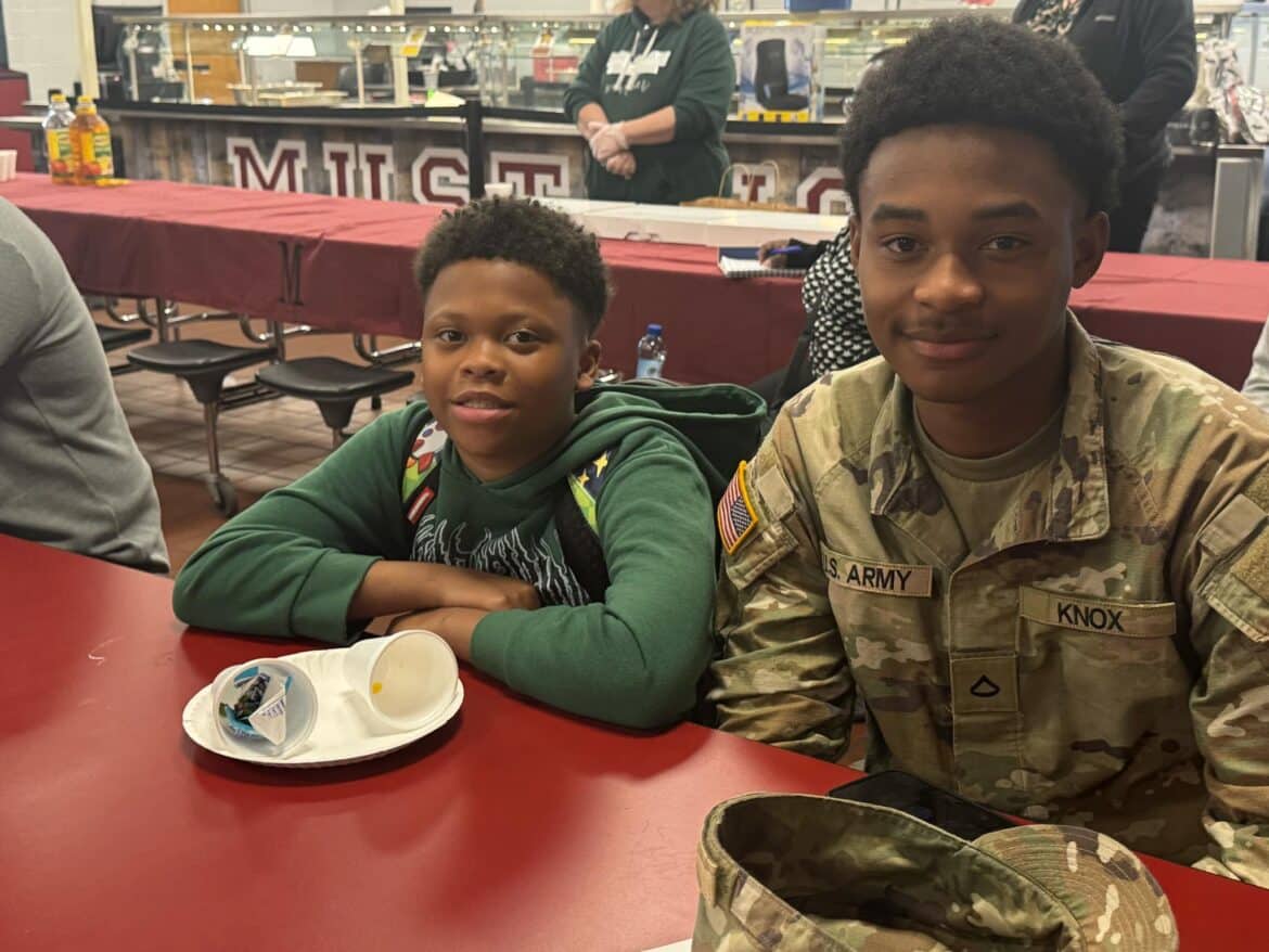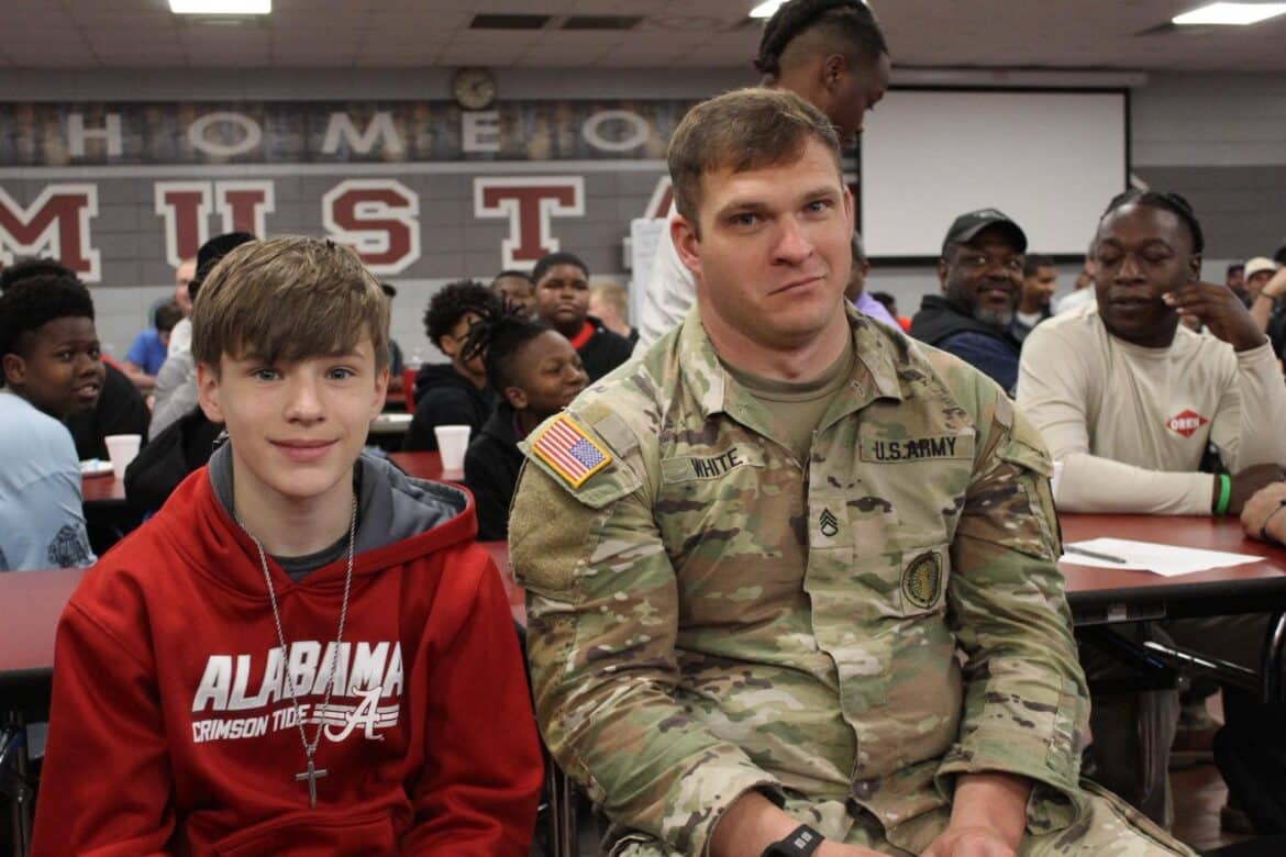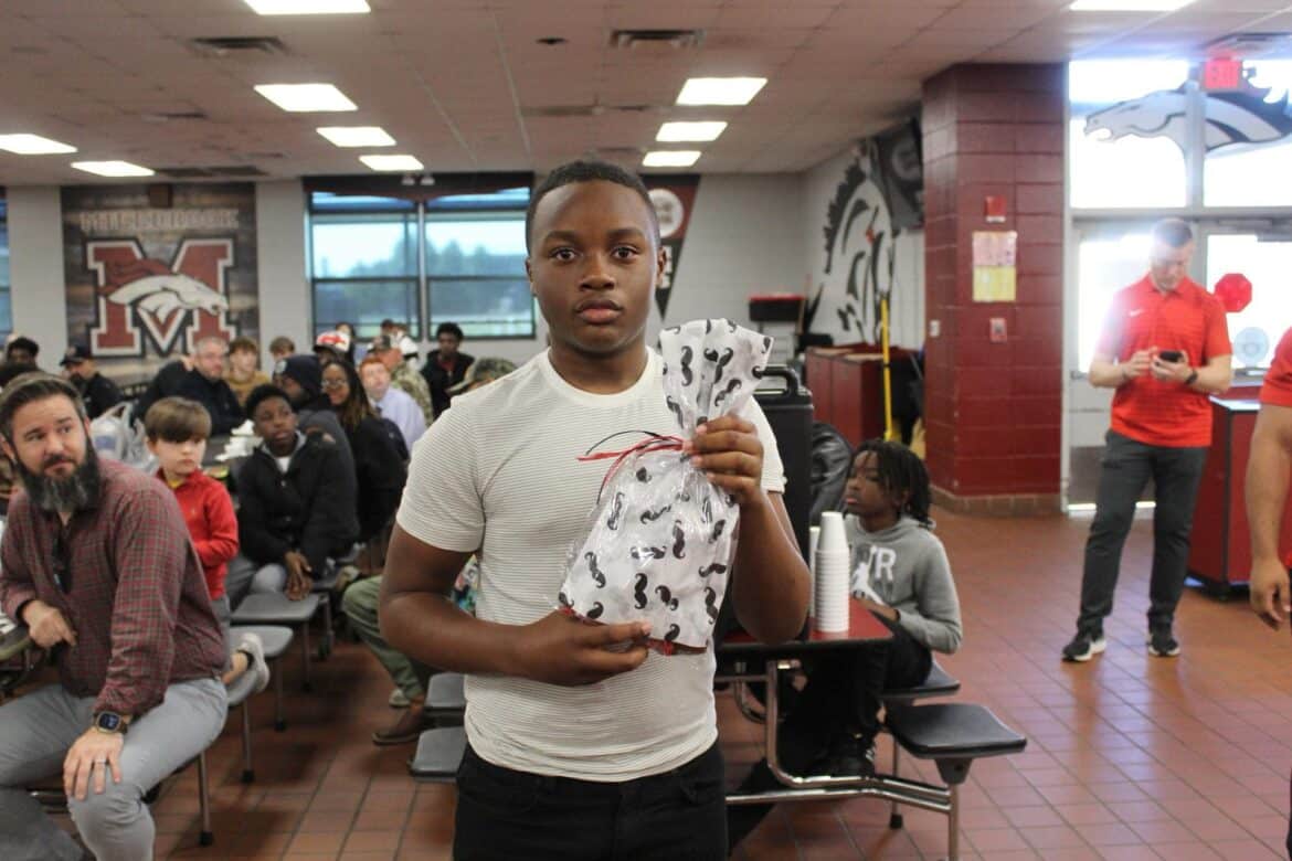 Last week, Millbrook Middle School hosted their annual Fritters and Father Figures event in the school cafeteria. Over 150 students attended with their fathers and father figures. This year, Coach Charlie Goodyear, an Assistant Athletic Director for Athletic Performance at Huntingdon College, was the guest speaker. Letitia Ruffin-Johnson, Assistant Principal for 5th and 6th grade, was in charge of putting this event together for the school. All guests enjoyed fritters, and donuts provided by Kingdom Dough of Millbrook. Coffee was provided by Sweet Hart Coffee Co., in Millbrook. Door prizes were given out at the end. Some of these amazing prizes were graciously donated by the Floyd family of Main Street Vintage Market, a swag bucket donated by Kyle Jenkins owner The Worx Auto Detail, a hat from the Millbrook Area Chamber of Commerce, and other wonderful prizes.