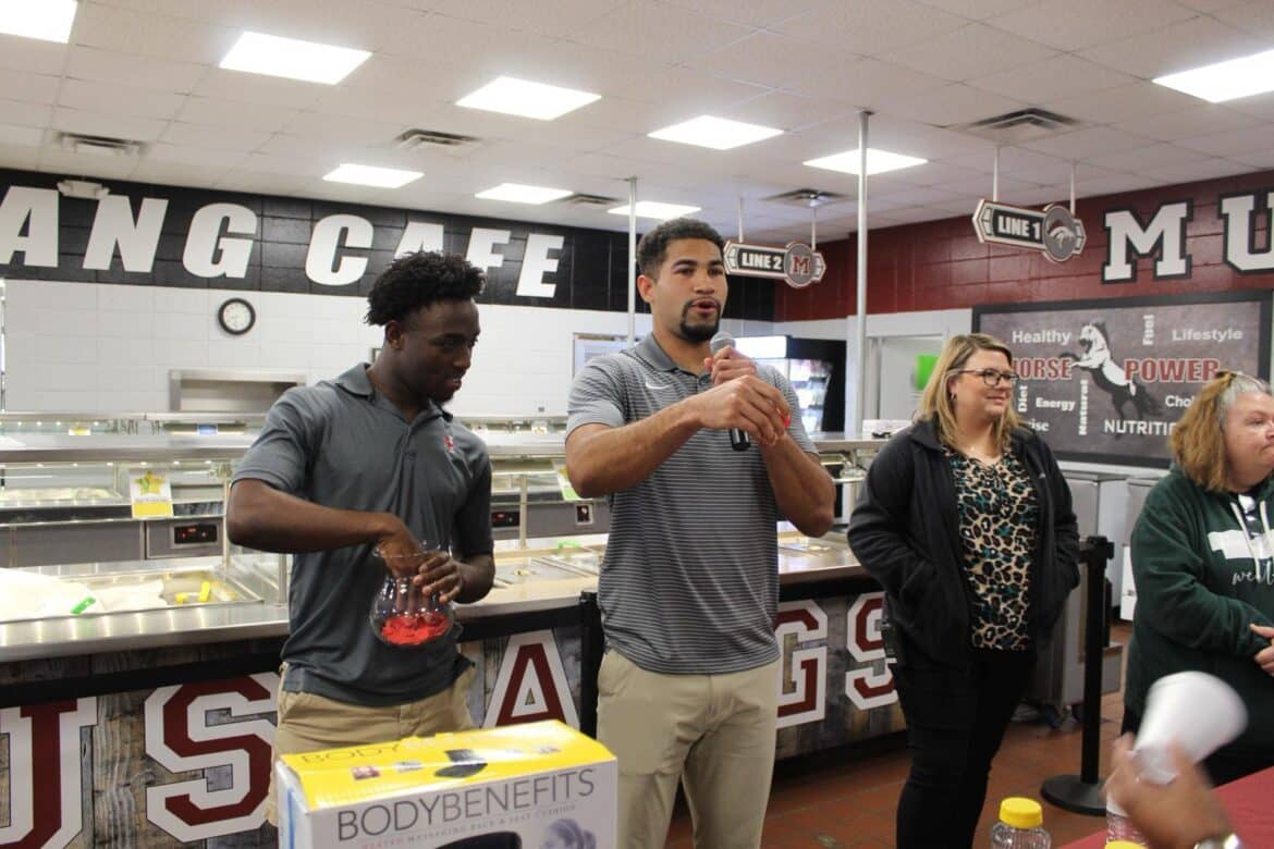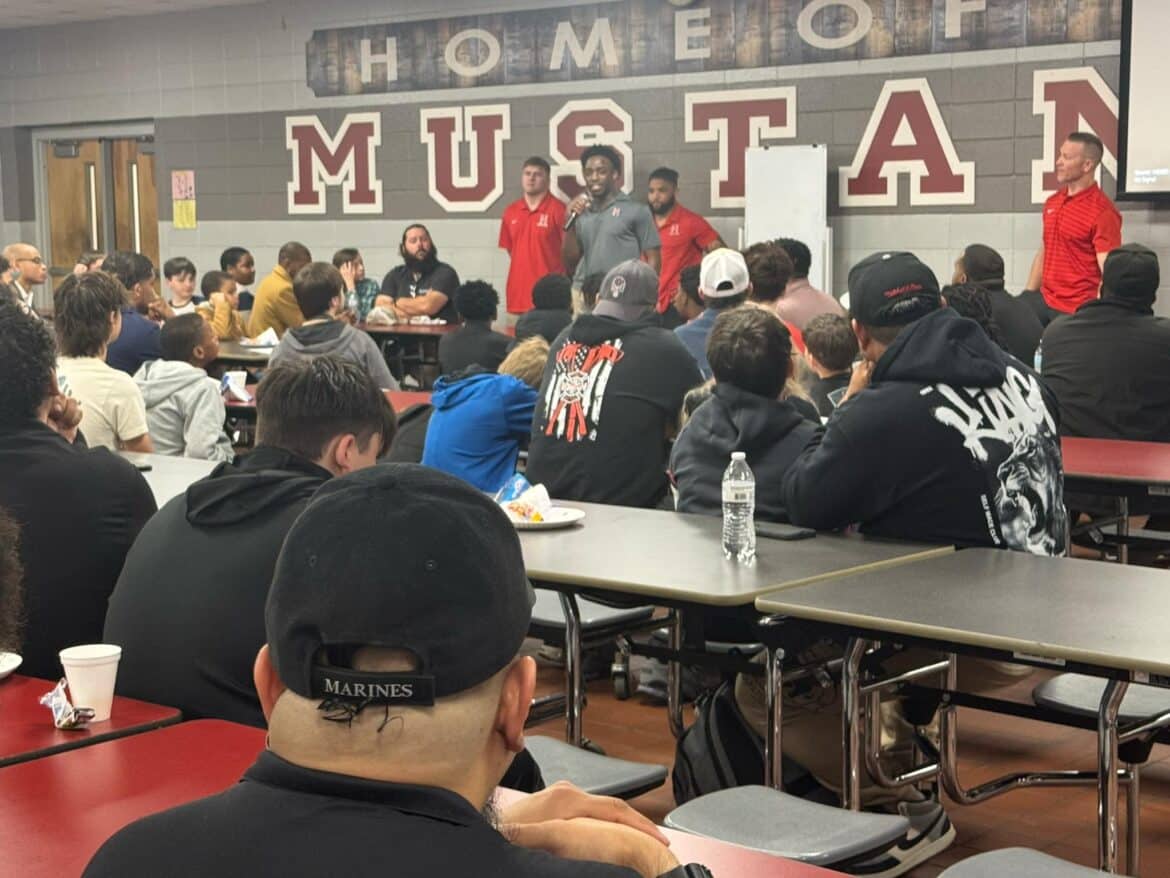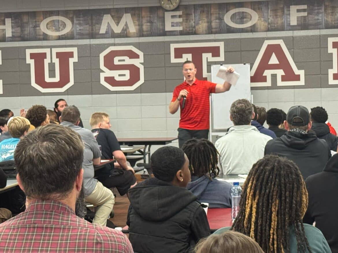 Goodyear brought four of his players from Huntingdon College to the event, including Timothy McReynolds, Nicholas Brashear, Blake Palmer, and Gus Johnson. They each spoke before Coach Goodyear and were relatable to the boys in grades fifth through eighth grade. Each of the young men spoke about the men who were instrumental in their own lives.
