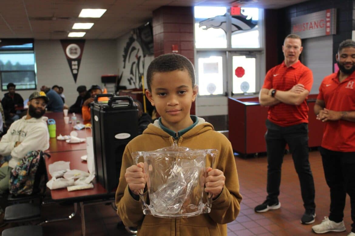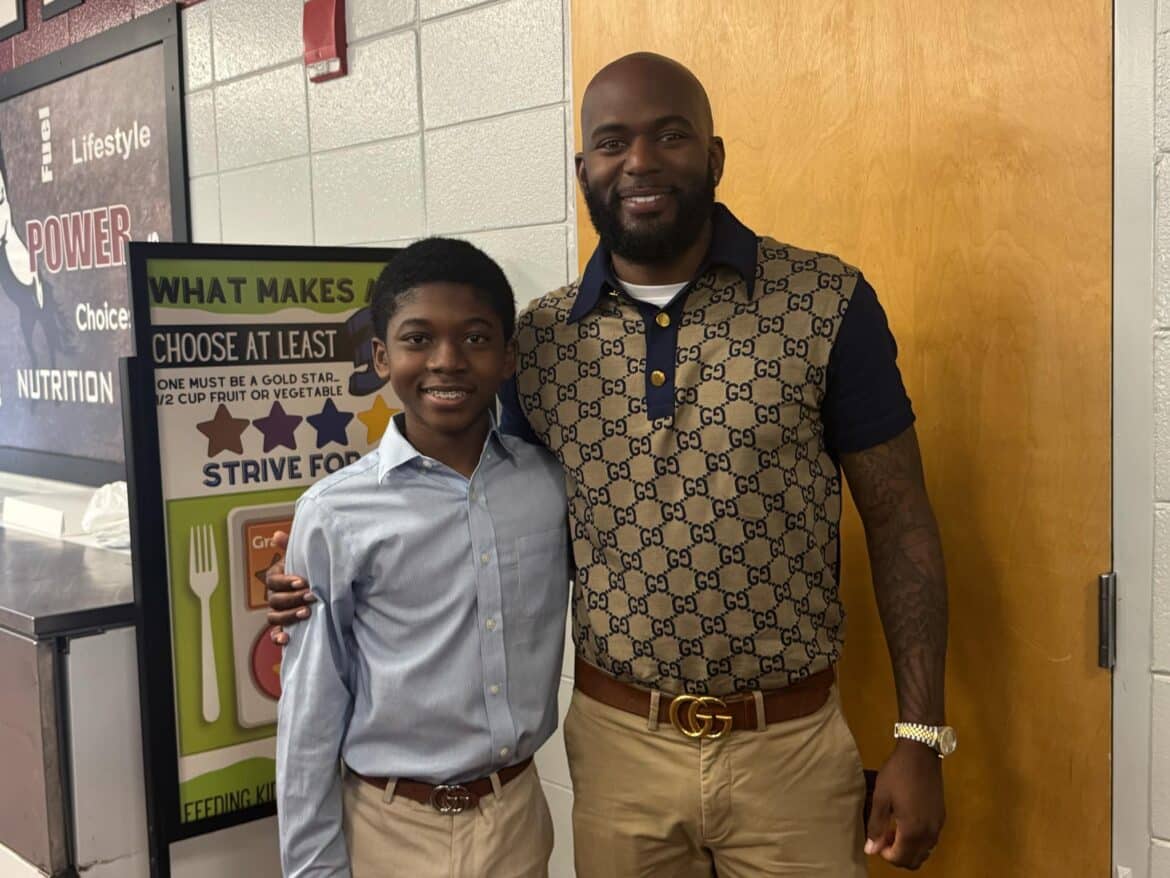 He spoke about his 5th grade coach, who was instrumental in getting him involved in football. He also asked the boys in the audience about what they wanted to be when they grew up. Some of the students wanted to be NFL players, NBA players, MLB players, lawyers and other professions. He said to the students, “Young men, if you don’t have a dream, get one. Fathers and father figures, plant a seed.”