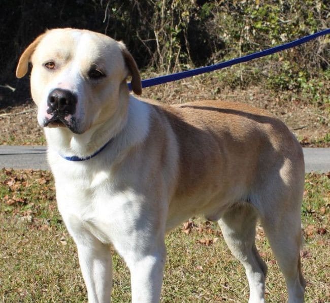 Buster is a 6-year-old male Yellow Lab/Great Pyrenees mix who has already been neutered. He is return adoption due to landlord issues. Buster is quite the handsome fellow–light tan coat (some call it blonde) with white markings. Buster currently weighs 90 pounds so he is considered to be an extra-large dog. Even though he is active and playful, he is well behaved; and he would greatly appreciate a nice fenced yard where he could safely get some exercise. Buster is leash trained and enjoys going on a walk; he is also house trained. Being the friendly and sweet fellow that he is, Buster would be fine with older children and other dogs. Please consider giving Buster a great new home and all the love he deserves.