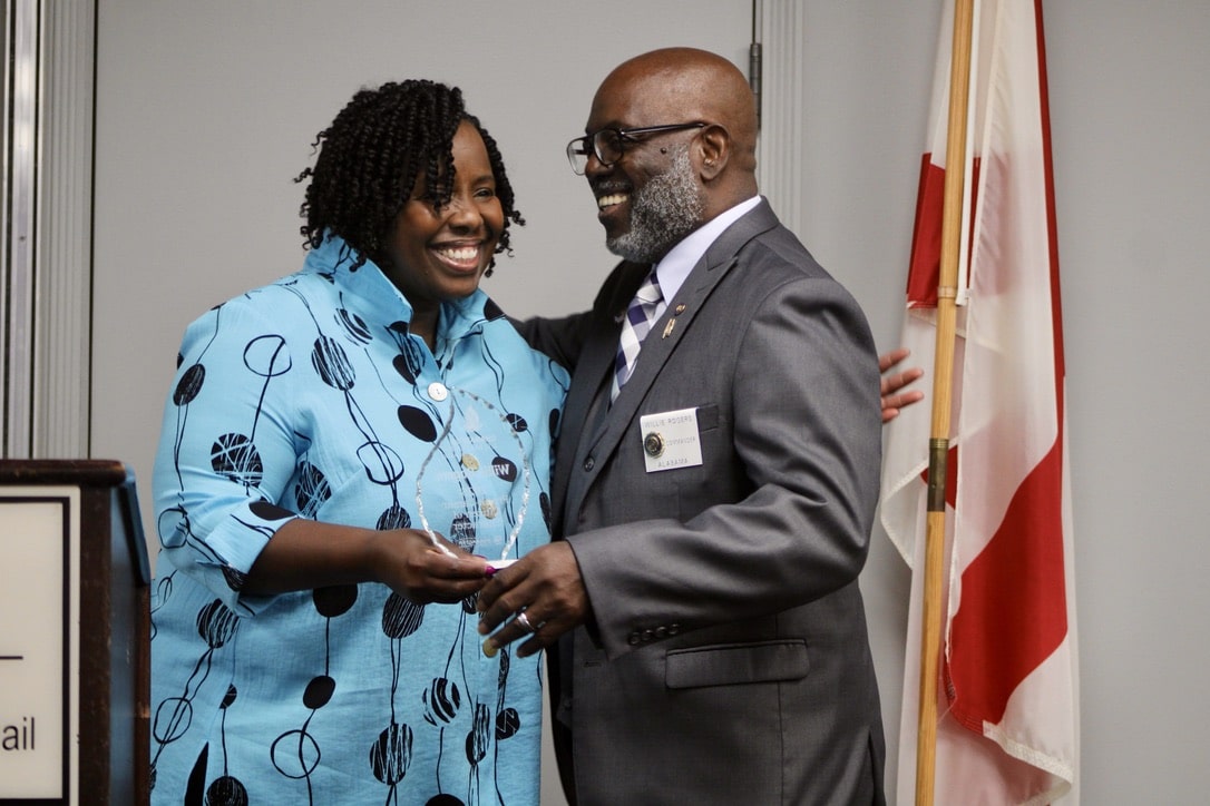 Kaylyn Walker presented the 2025 Frank Lamar Citizen of Character Award to Commander Willie Rodgers.